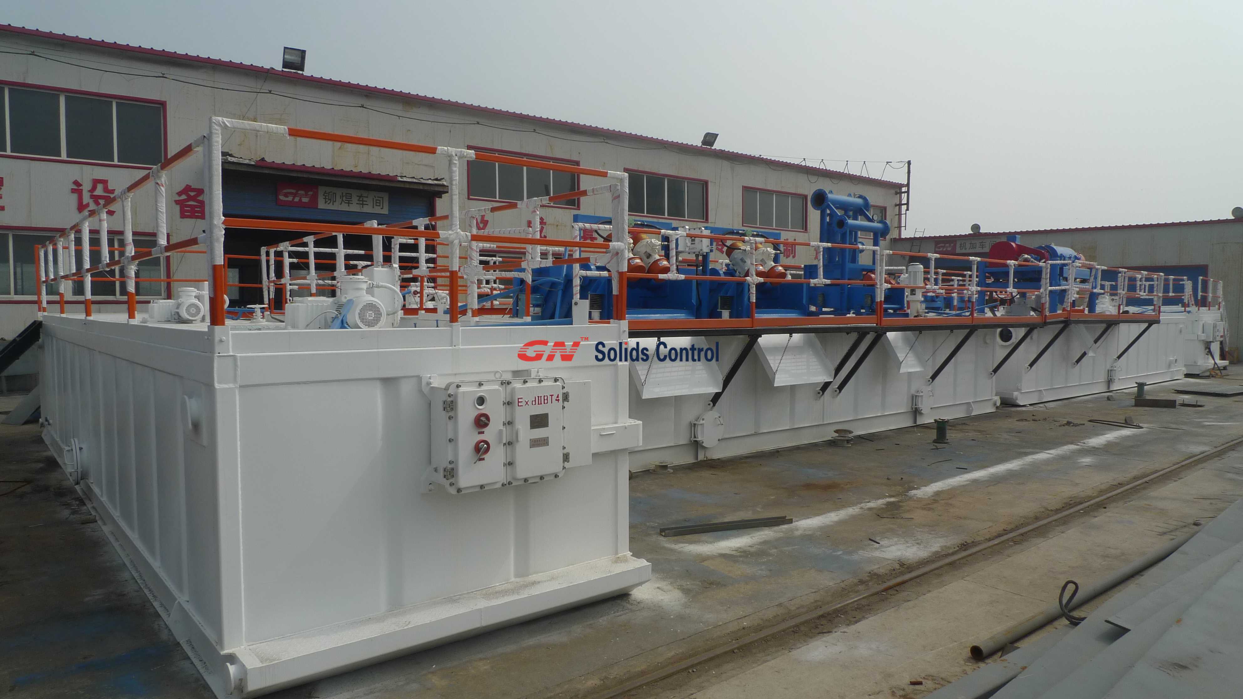 XJ550固控設備包括振動篩,除砂器,臥螺離心機,泥漿攪拌器,泥漿槍,沙泵,泥漿罐等。